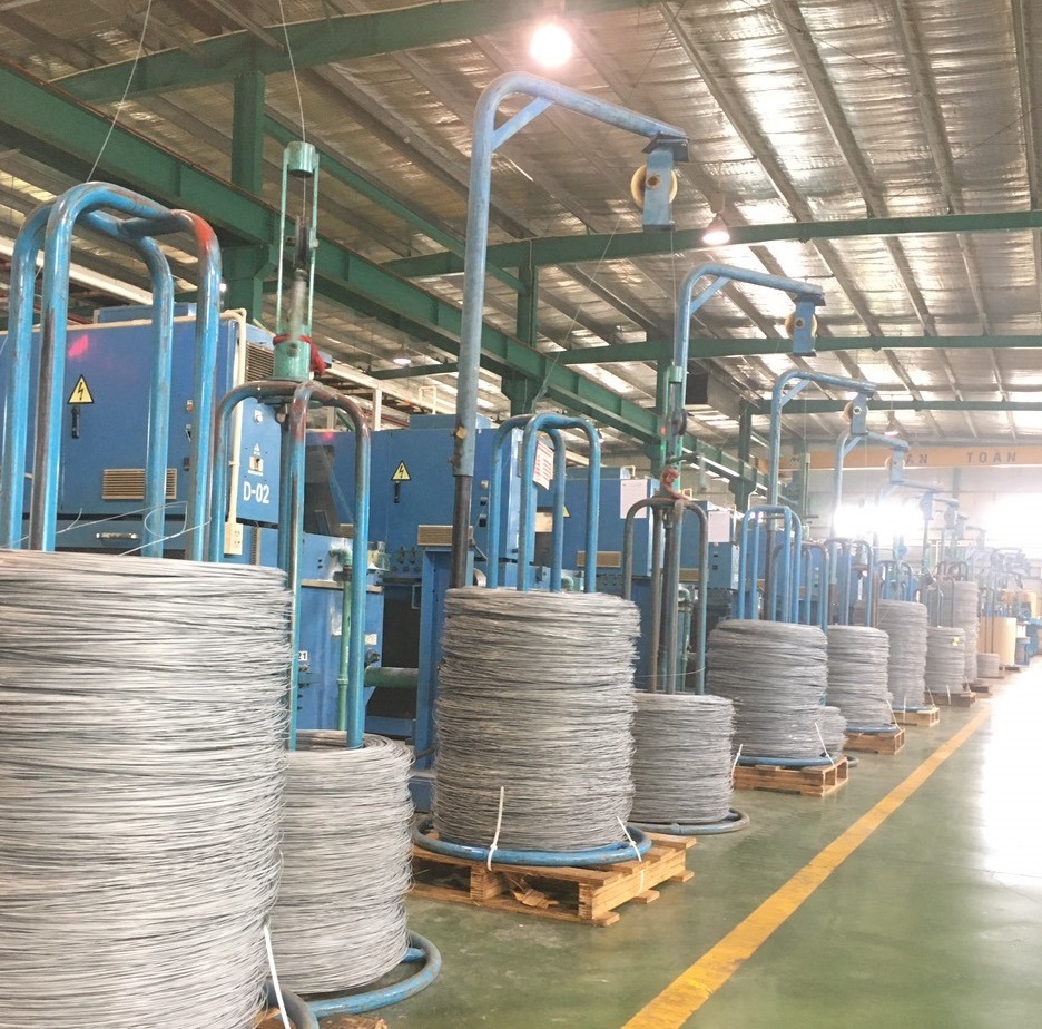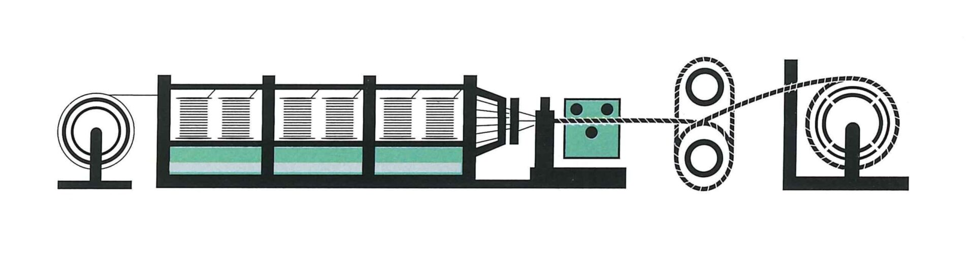 熱処理された線材をそのままインラインで電気亜鉛メッキする方式ですので、重力に影響なく亜鉛が円周上に均一に付着します。そのため次の伸線工程で、均一の抵抗でダイス内に入っていくサポートをします。